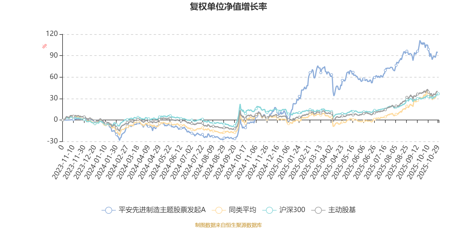 截至10月28日,平安先进制造主题股票发起A近三个月复权单位净值增长率为11.78%,位于同类可比基金33/39;近半年复权单位净值增长率为25.89%,位于同类可比基金30/39;近一年复权单位净值增长率为99.10%,位于同类可比基金1/38。