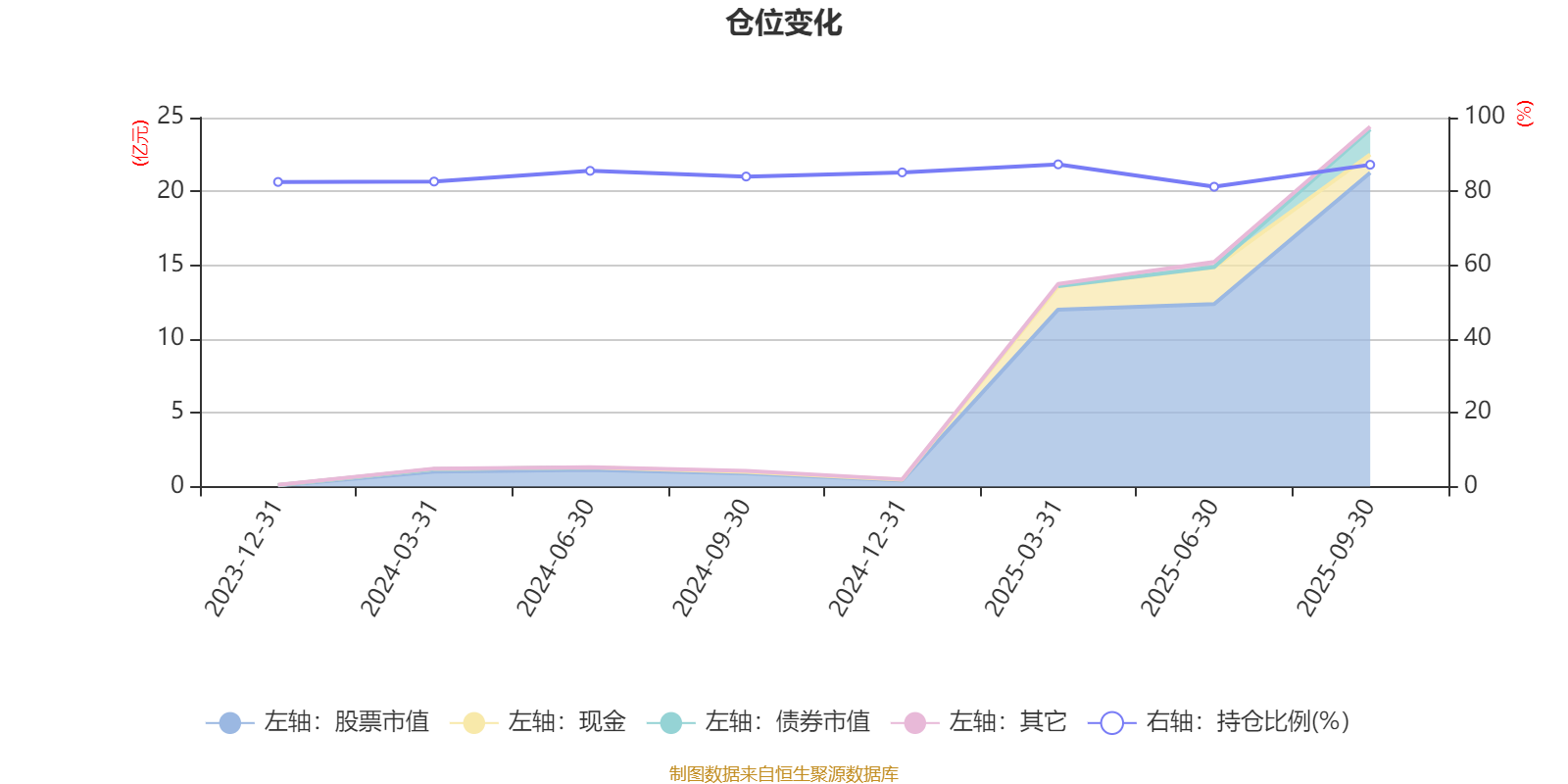 据定期报告数据统计,成立以来平均股票仓位为84.47%,同类平均为87.59%。2025年一季度末基金达到87.33%的最高仓位,2025年上半年末最低,为81.26%。