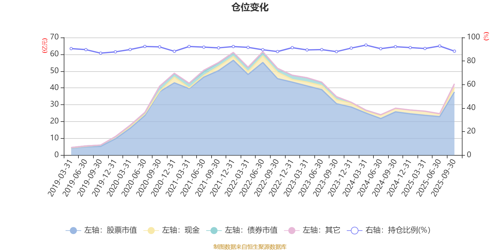 据定期报告数据统计,近三年平均股票仓位为90.74%,同类平均为87.59%。2024年一季度末基金达到93.54%的最高仓位,2019年三季度末最低,为86.7%。
