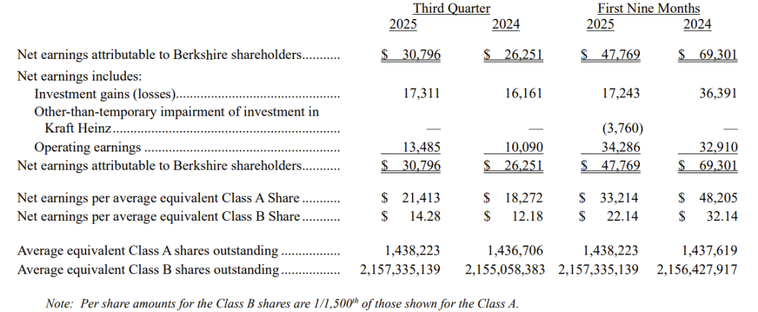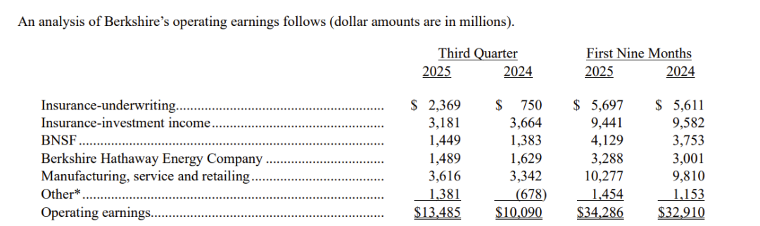 营业利润大增为净利润增长贡献了主要力量,第三季度伯克希尔营业利润达134.85亿美元,同比增长33.65%。这也显示出伯克希尔传统业务在今年三季度的稳健盈利能力。