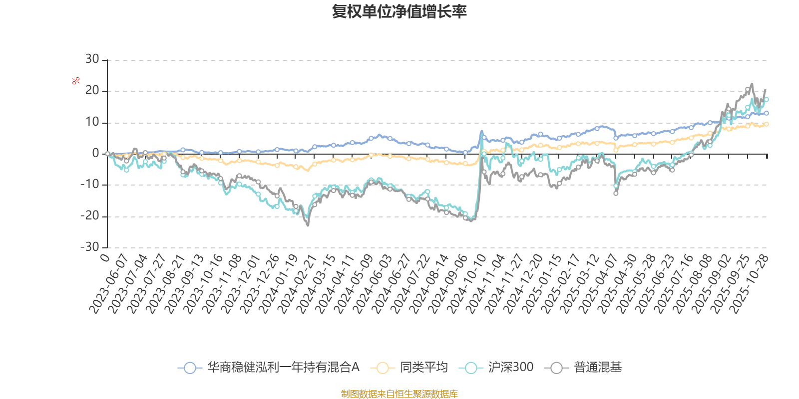 截至10月28日,华商稳健泓利一年持有混合A近三个月复权单位净值增长率为3.13%,位于同类可比基金235/629;近半年复权单位净值增长率为6.64%,位于同类可比基金229/629;近一年复权单位净值增长率为8.19%,位于同类可比基金222/623。