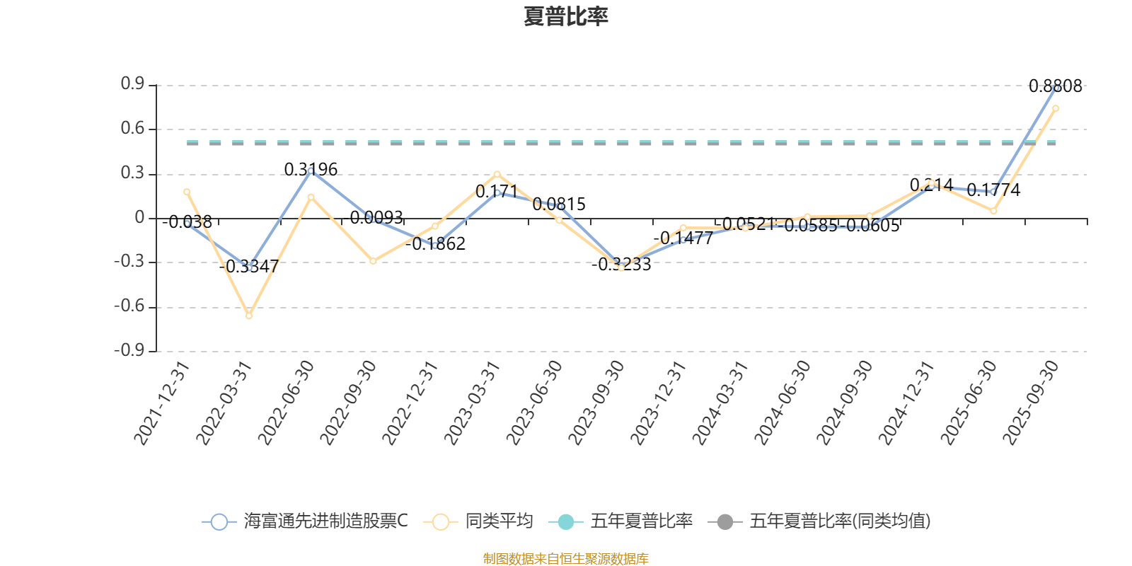 截至9月30日,基金近三年夏普比率为0.5683,位于同类可比基金44/51。