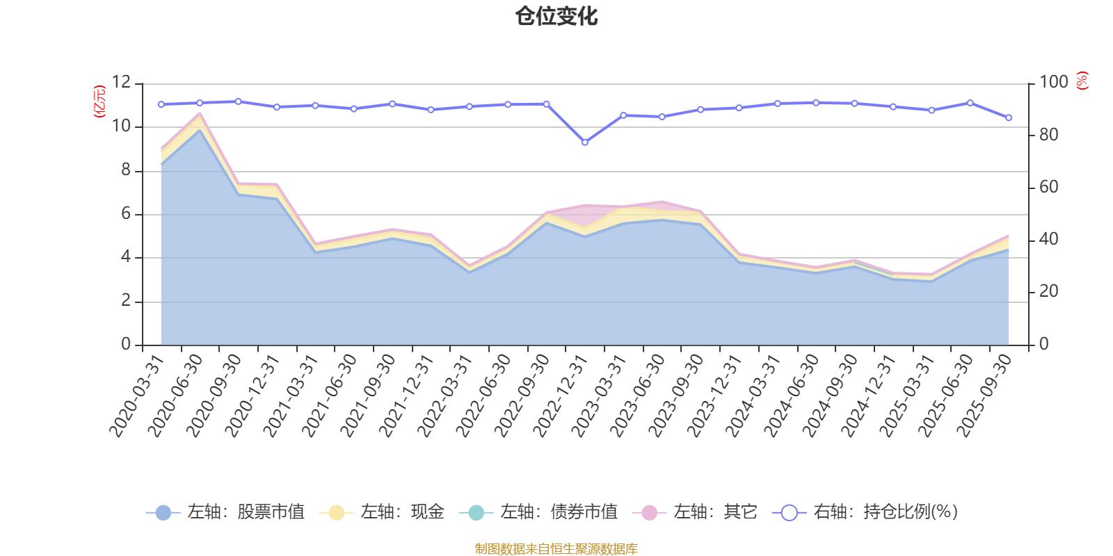 据定期报告数据统计,近三年平均股票仓位为89.23%,同类平均为88.29%。2020年三季度末基金达到93.1%的最高仓位,2022年末最低,为77.5%。