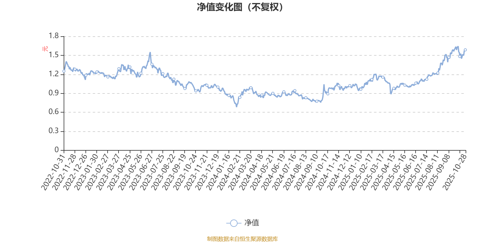 通过所选区间该基金净值增长率分位图,可以观察该基金与同类基金业绩比较情况。图为坐标原点到区间内某时点的净值增长率在同类基金中的分位数。