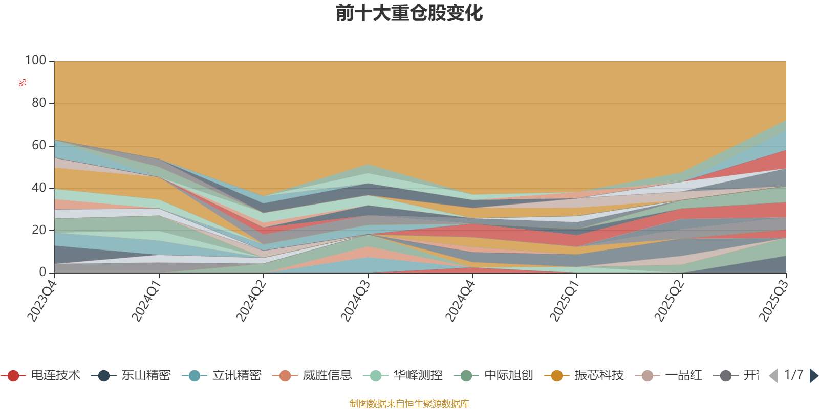 截至2025年三季度末,基金十大重仓股分别是新易盛、工业富联、胜宏科技、中际旭创、东山精密、信达生物、寒武纪、三生制药、圣诺生物、石药集团。