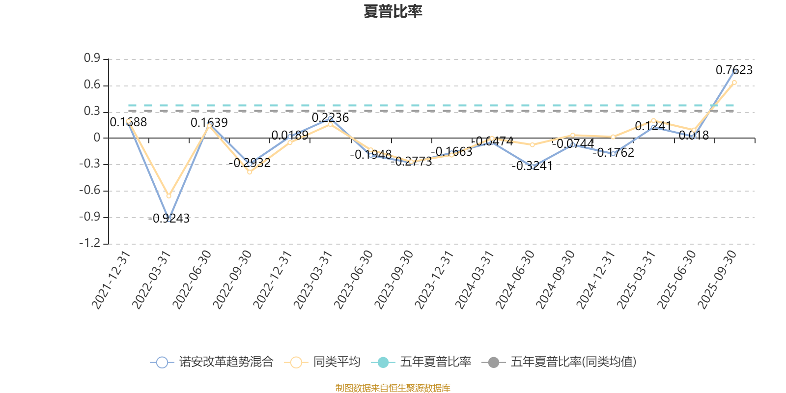 截至10月28日,诺安改革趋势混合近三个月复权单位净值增长率为8.80%,位于同类可比基金764/1287;近半年复权单位净值增长率为18.40%,位于同类可比基金809/1287;近一年复权单位净值增长率为5.48%,位于同类可比基金1099/1287;近三年复权单位净值增长率为1.36%,位于同类可比基金996/1286。
