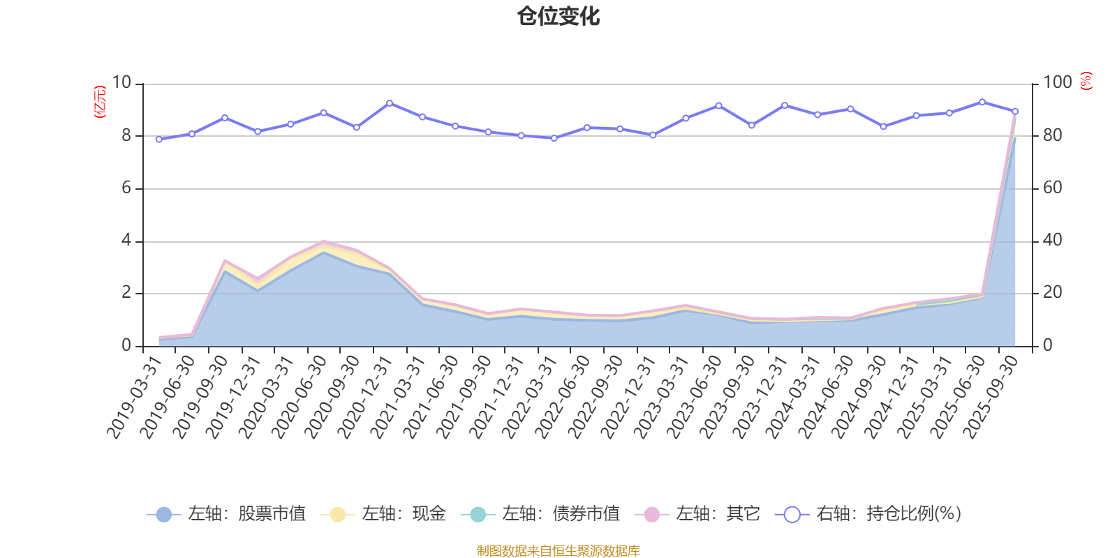 据定期报告数据统计,近三年平均股票仓位为88.03%,同类平均为88.29%。2025年上半年末基金达到93.03%的最高仓位,2019年一季度末最低,为78.83%。