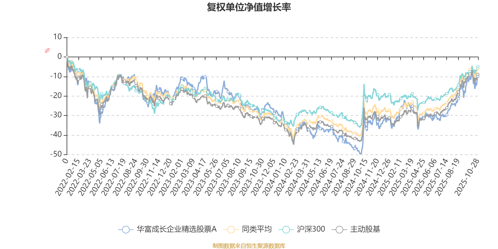 截至10月28日,华富成长企业精选股票A近三个月复权单位净值增长率为19.67%,位于同类可比基金60/167;近半年复权单位净值增长率为31.30%,位于同类可比基金78/166;近一年复权单位净值增长率为33.30%,位于同类可比基金59/164;近三年复权单位净值增长率为13.39%,位于同类可比基金102/156。