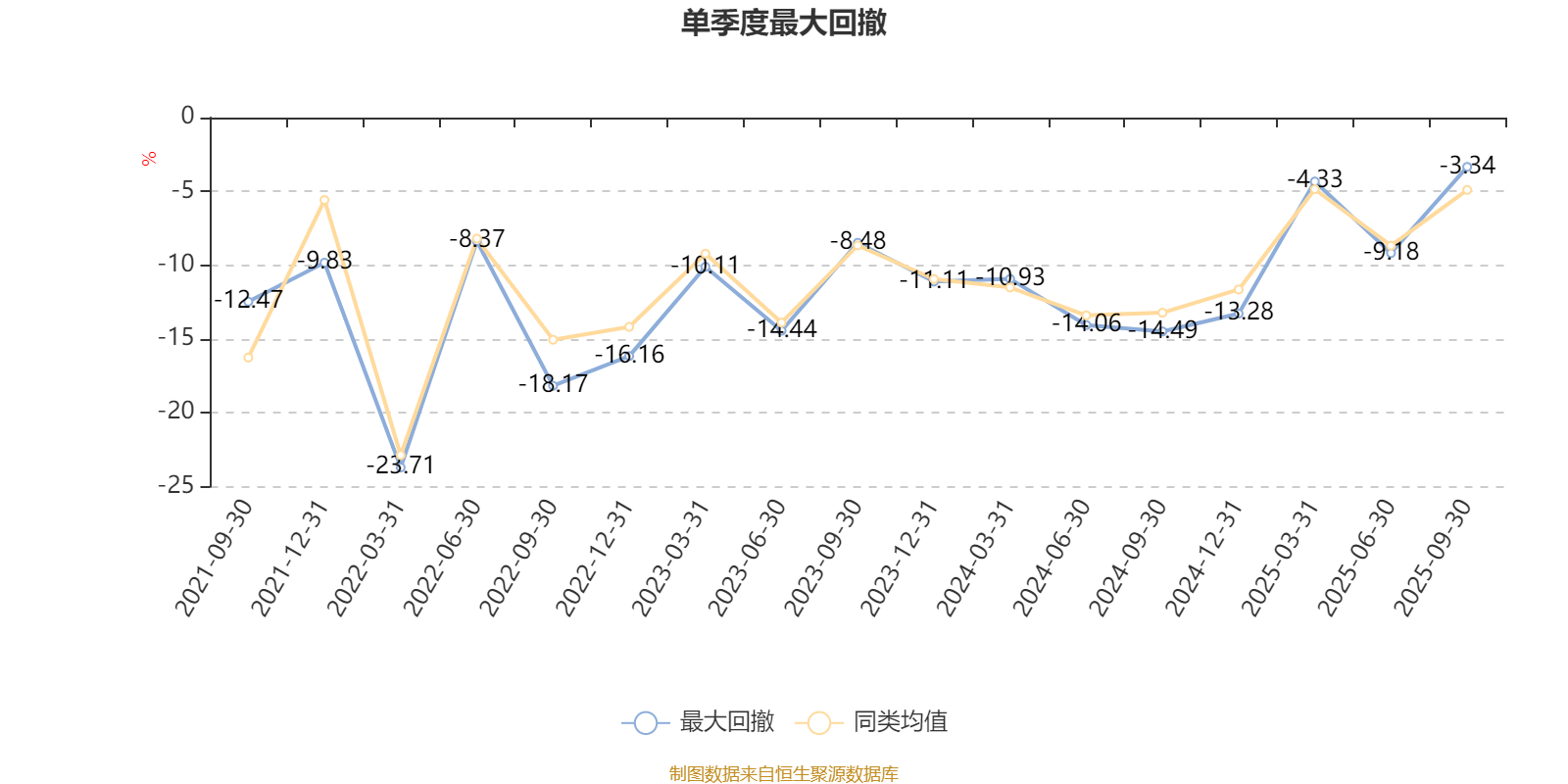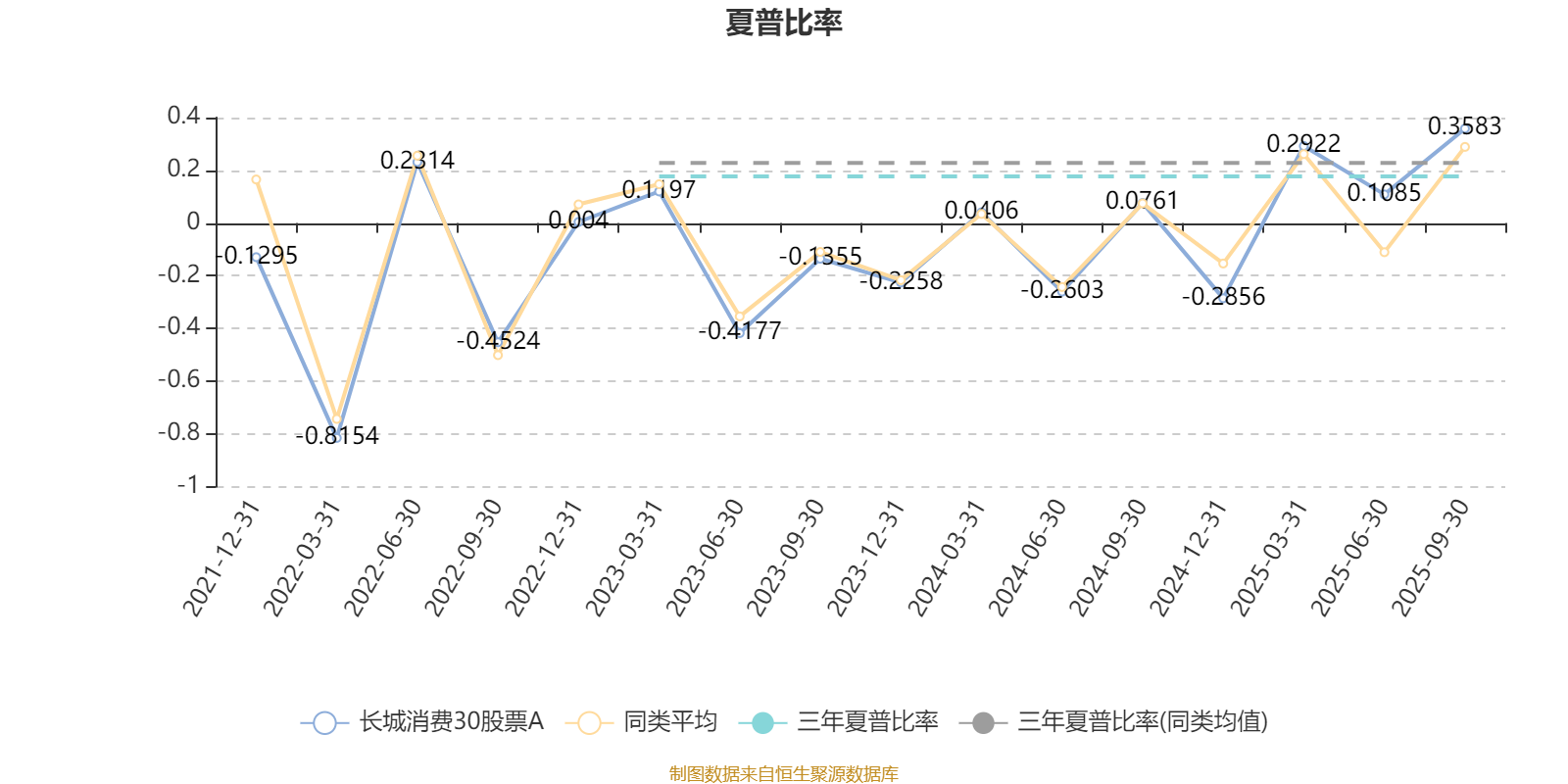 截至9月30日,基金近三年夏普比率为0.1769,位于同类可比基金22/40。