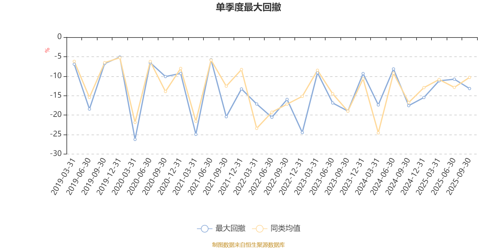 截至10月28日,基金近三年最大回撤为45.41%,同类可比基金排名24/51。单季度最大回撤出现在2020年一季度,为26.27%。