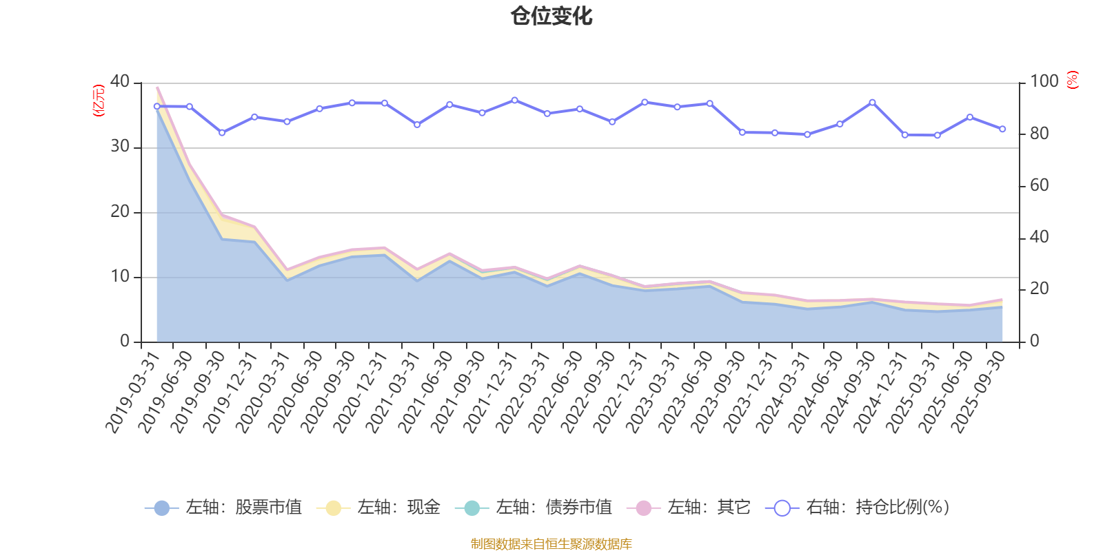 据定期报告数据统计,近三年平均股票仓位为85.12%,同类平均为88.29%。2021年末基金达到93.24%的最高仓位,2025年一季度末最低,为79.72%。