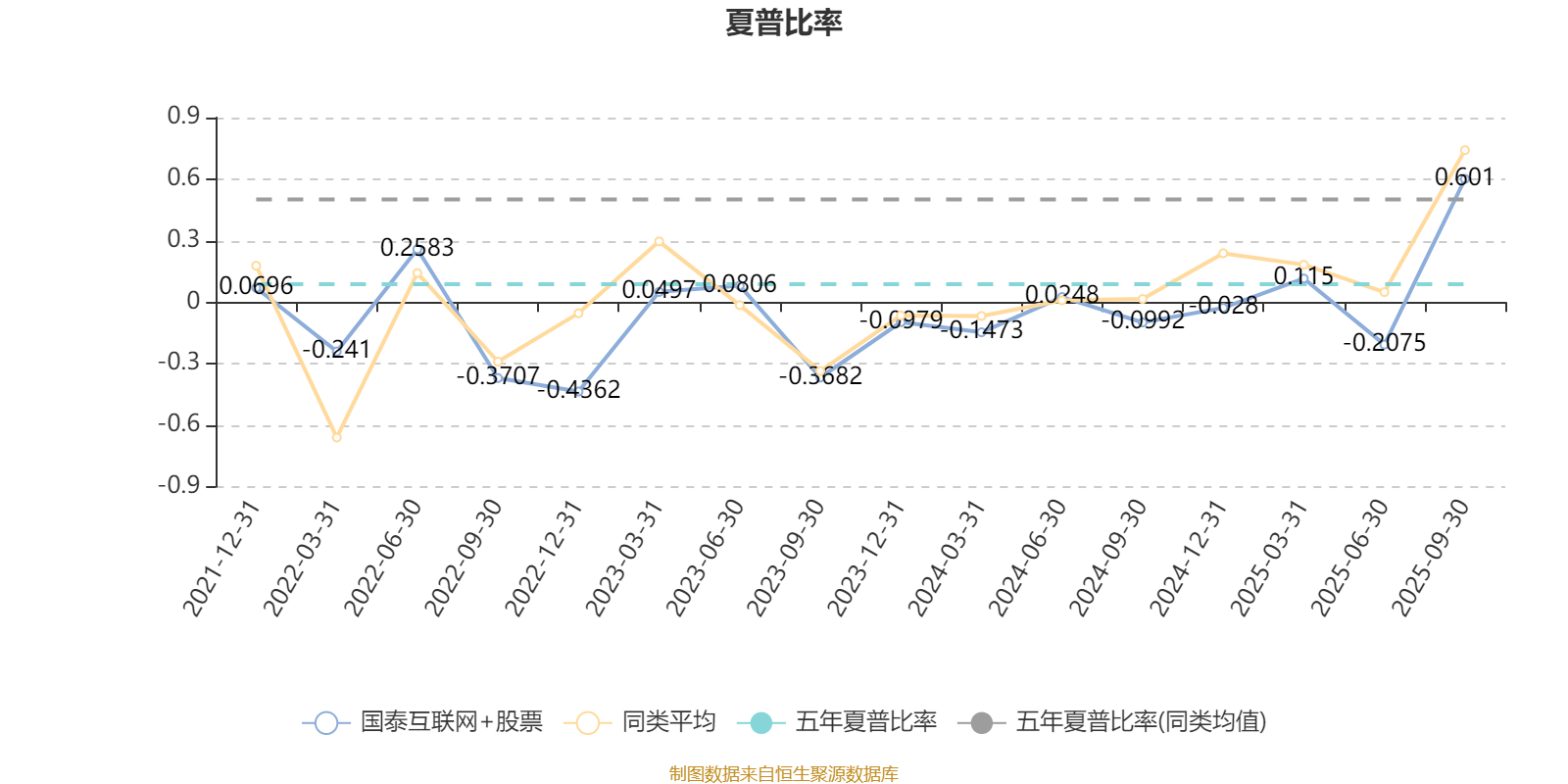 截至9月30日,基金近三年夏普比率为0.0955,位于同类可比基金51/51。