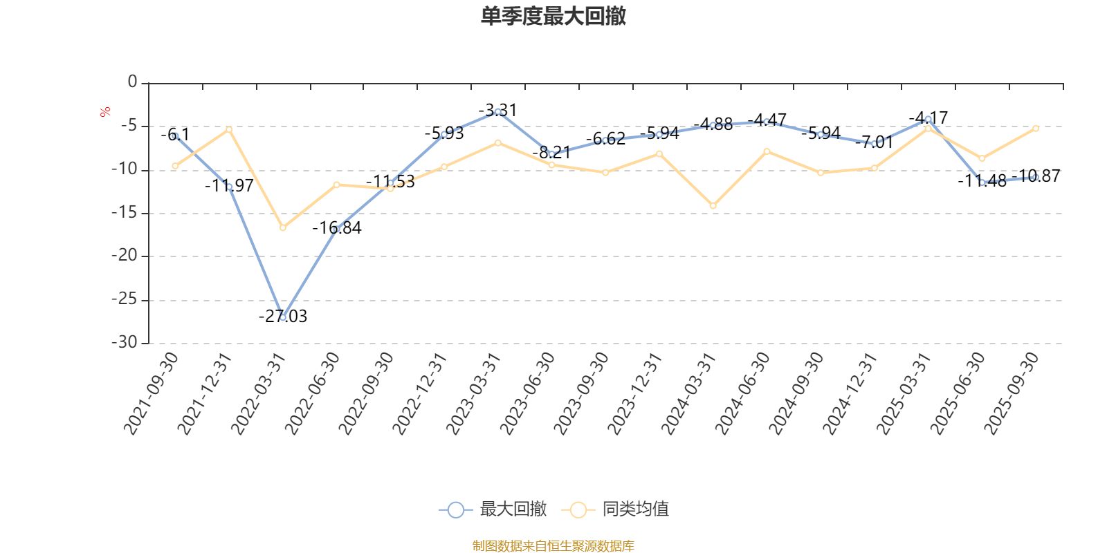 截至10月27日,基金近三年最大回撤为21.18%,同类可比基金排名296/1274。单季度最大回撤出现在2022年一季度,为27.03%。
