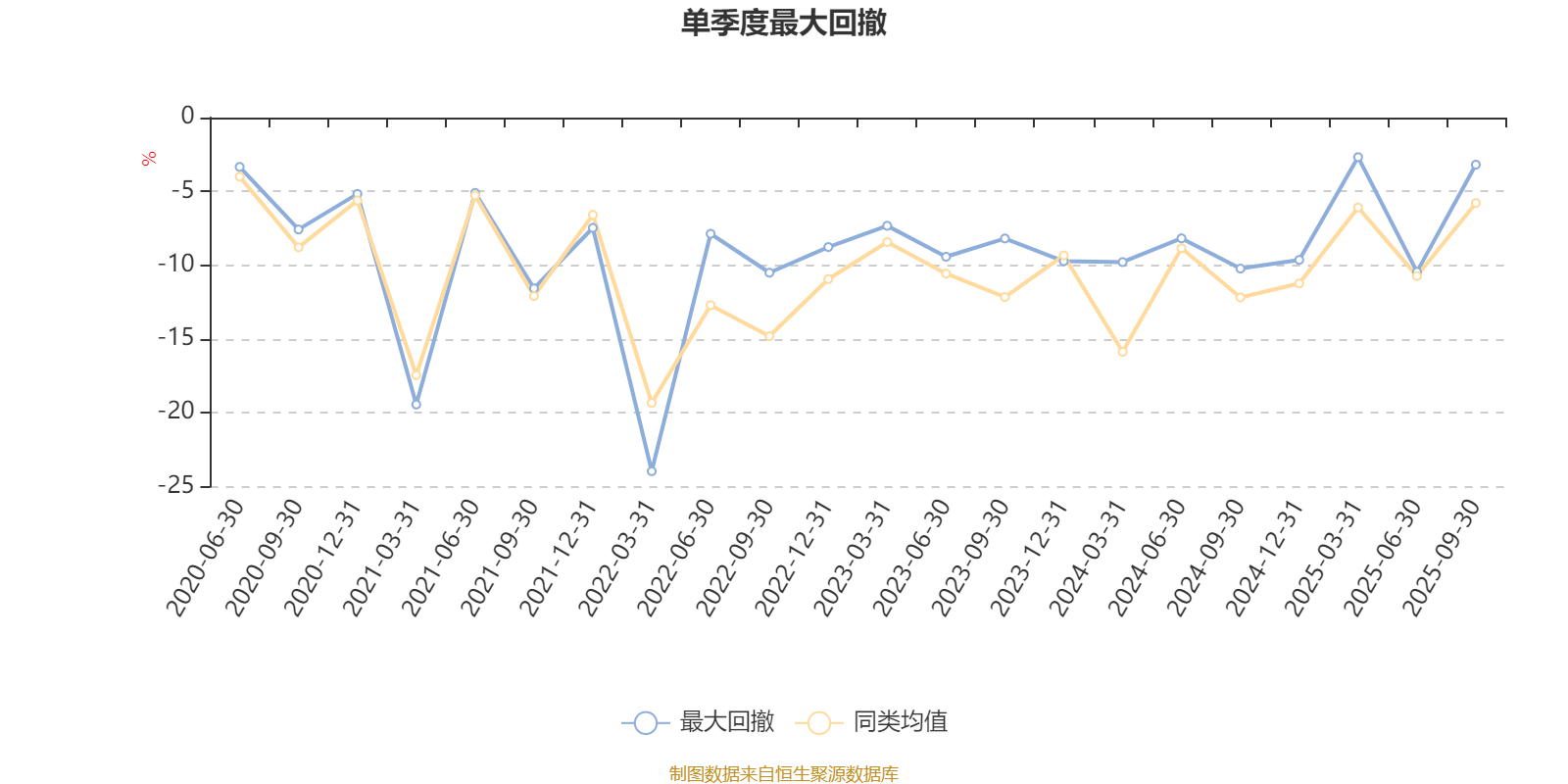 截至10月27日,基金近三年最大回撤为25.26%,同类可比基金排名51/363。单季度最大回撤出现在2022年一季度,为23.96%。