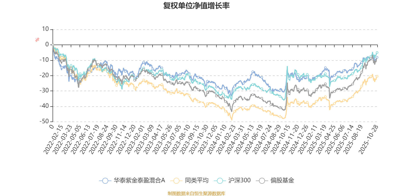截至10月28日,华泰紫金泰盈混合A近三个月复权单位净值增长率为4.96%,位于同类可比基金560/689;近半年复权单位净值增长率为14.58%,位于同类可比基金565/688;近一年复权单位净值增长率为12.08%,位于同类可比基金537/653;近三年复权单位净值增长率为14.47%,位于同类可比基金186/364。