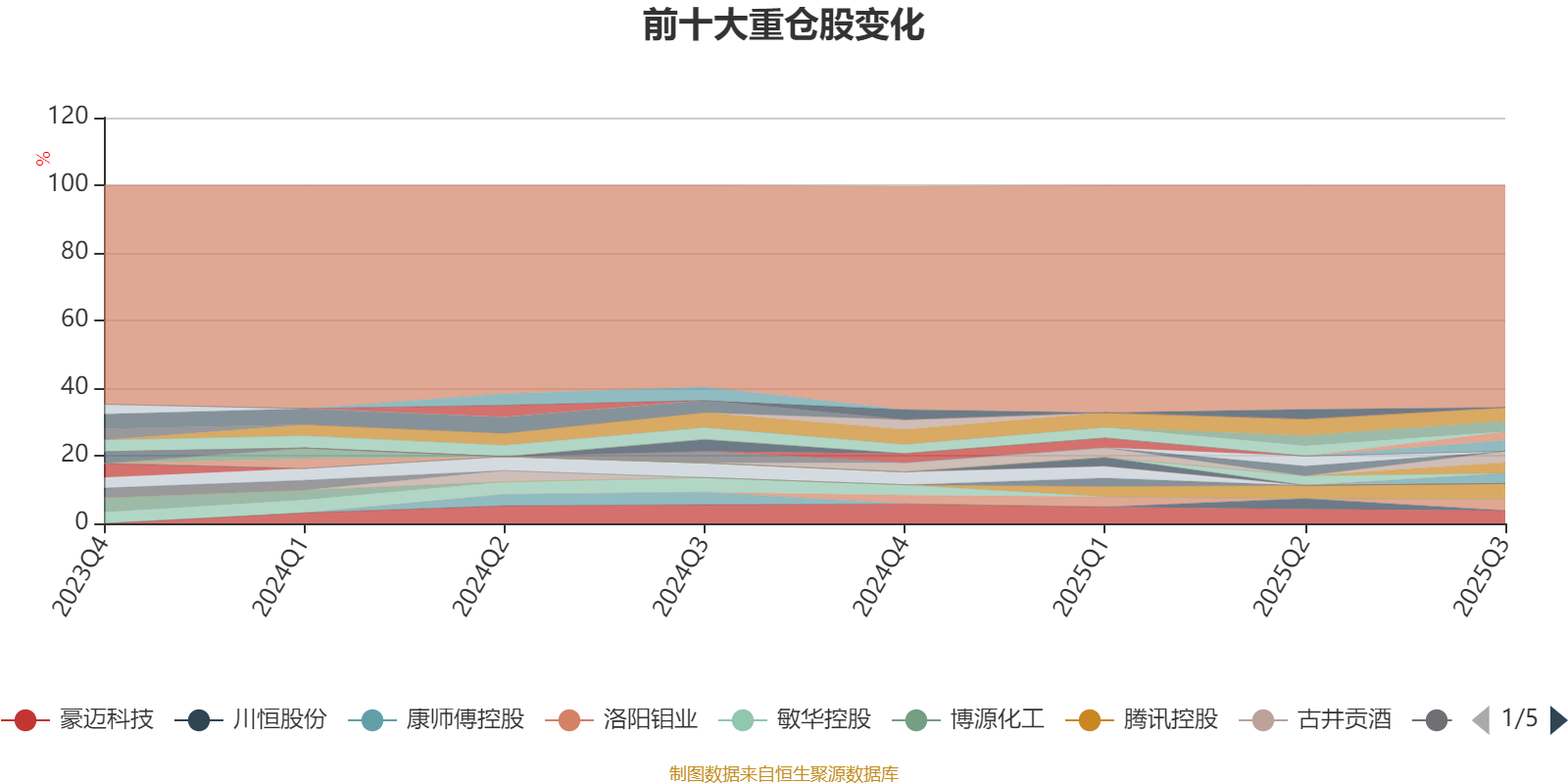 截至2025年三季度末,基金十大重仓股分别是腾讯控股、宝丰能源、豪迈科技、海天国际、洛阳钼业、达势股份、东航物流、理想汽车-W、中信国际电讯、兴发集团。