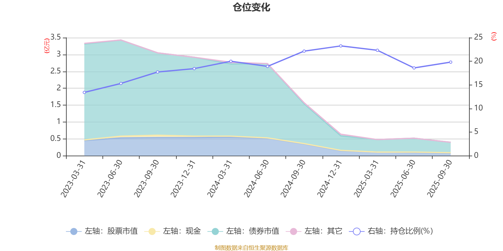 基金管理人在三季报中表示,报告期内,组合继续保持较高的权益仓位,行业配置上保持结构均衡,增加了医疗器械、消费电子、公用事业等板块的配置比例,对银行、PCB 等板块有所减仓。债券方面,组合整体仍然维持高等级信用债配置为主,久期继续保持中性水平。转债方面,由于转债估值处于较高水平,组合内继续降低了转债的仓位。