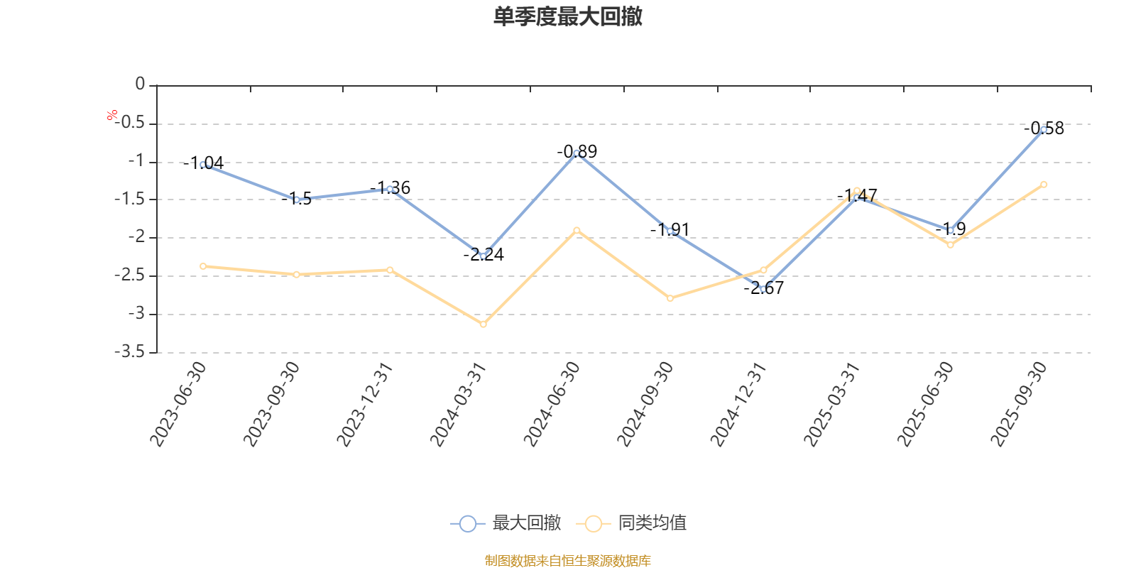 截至10月28日,基金成立以来最大回撤为4.05%。单季度最大回撤出现在2024年四季度,为2.67%。