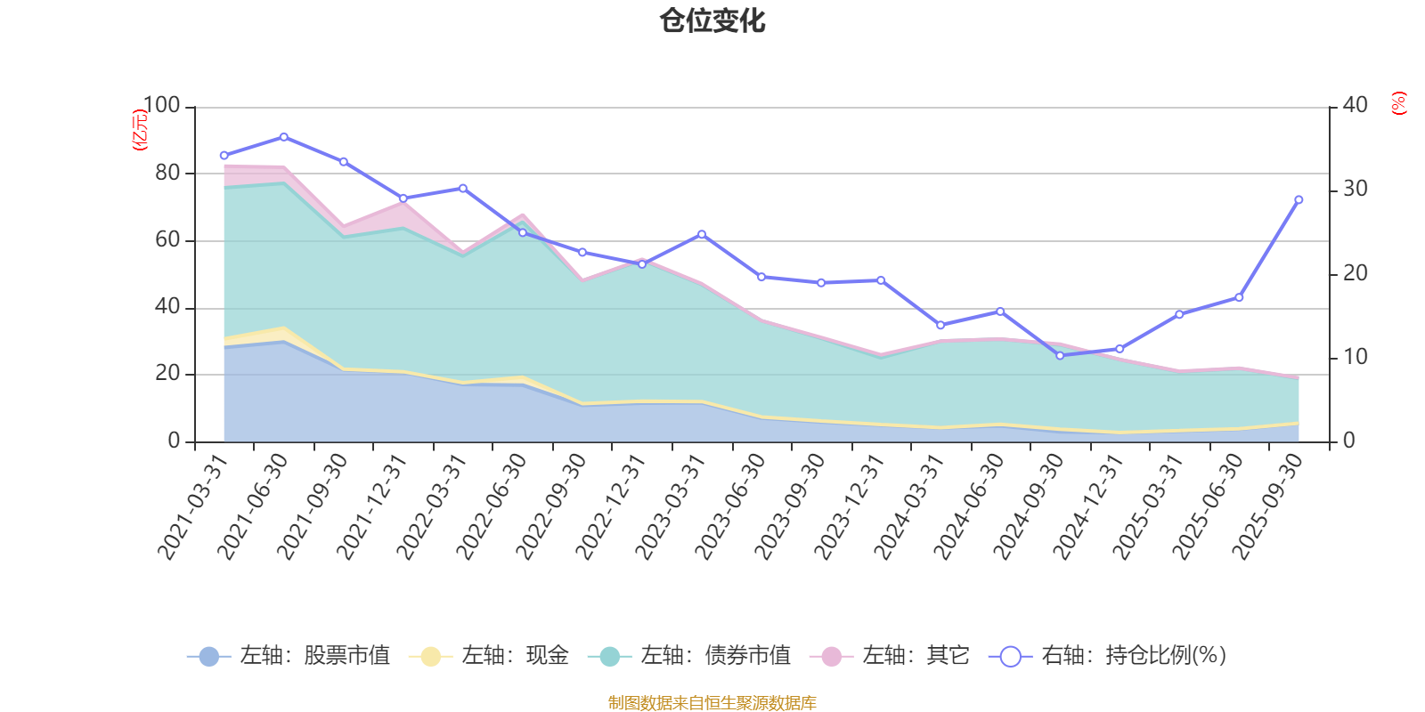 据定期报告数据统计,近三年平均股票仓位为18.02%,同类平均为19.14%。2021年上半年末基金达到36.4%的最高仓位,2024年三季度末最低,为10.3%。
