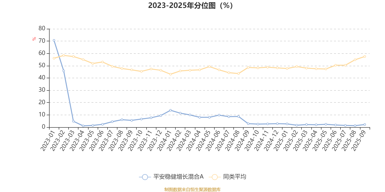 通过所选区间该基金净值增长率分位图,可以观察该基金与同类基金业绩比较情况。图为坐标原点到区间内某时点的净值增长率在同类基金中的分位数。