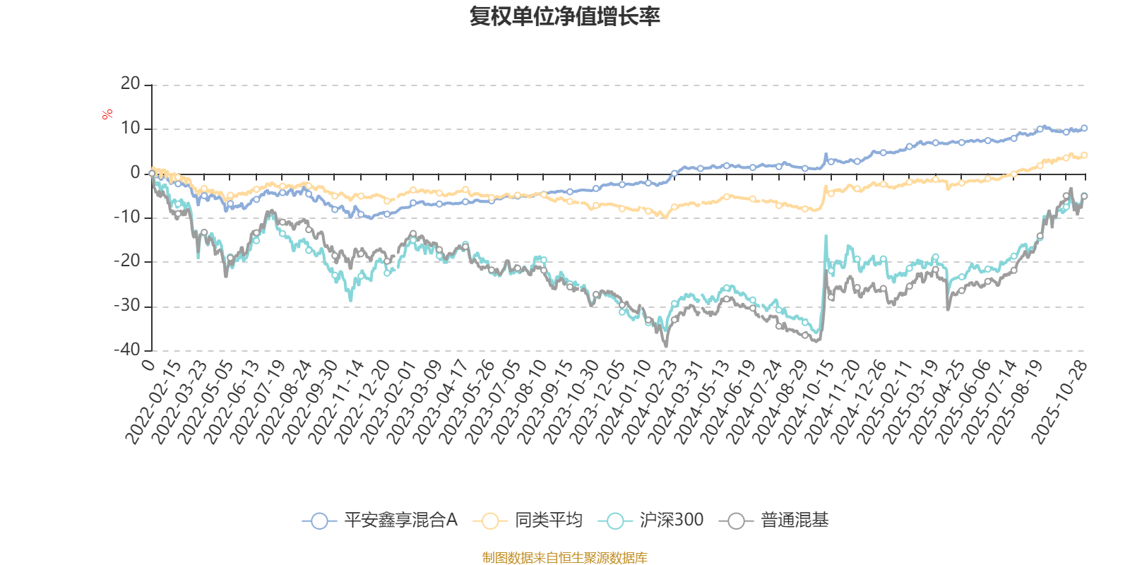 截至10月28日,平安鑫享混合A近三个月复权单位净值增长率为1.14%,位于同类可比基金472/629;近半年复权单位净值增长率为3.13%,位于同类可比基金497/629;近一年复权单位净值增长率为7.29%,位于同类可比基金272/623;近三年复权单位净值增长率为22.29%,位于同类可比基金59/557。