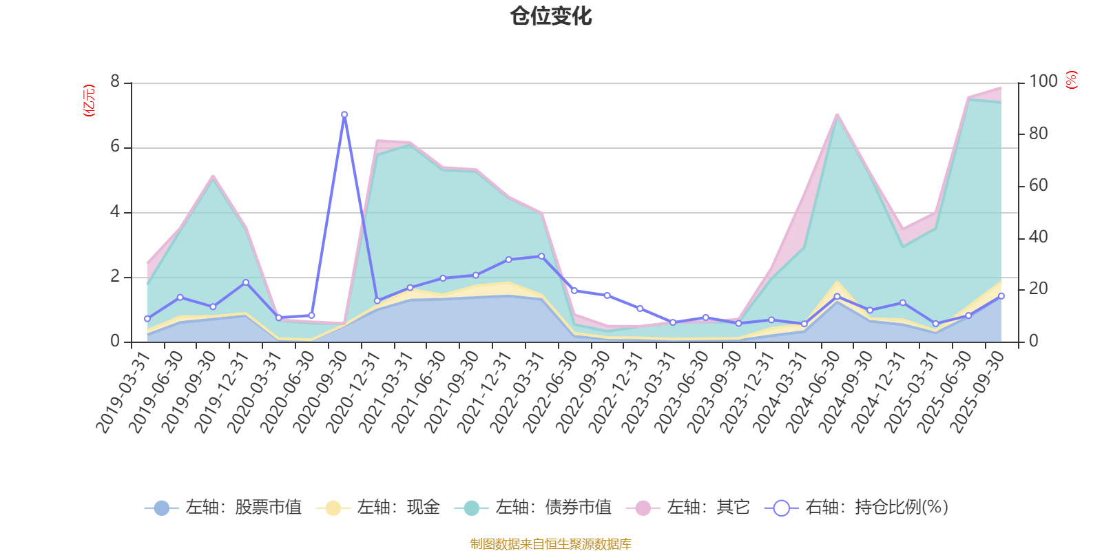 基金管理人在三季报中表示,权益方面,市场整体震荡上行。政策支持以及流动性较为充裕,带动风险偏好持续回升,整体估值有明显修复。结构上,国内外科技厂商在资本开支上的持续上修,以及反内卷政策推进,带动科技成长、有色化工电新等板块表现较为突出。