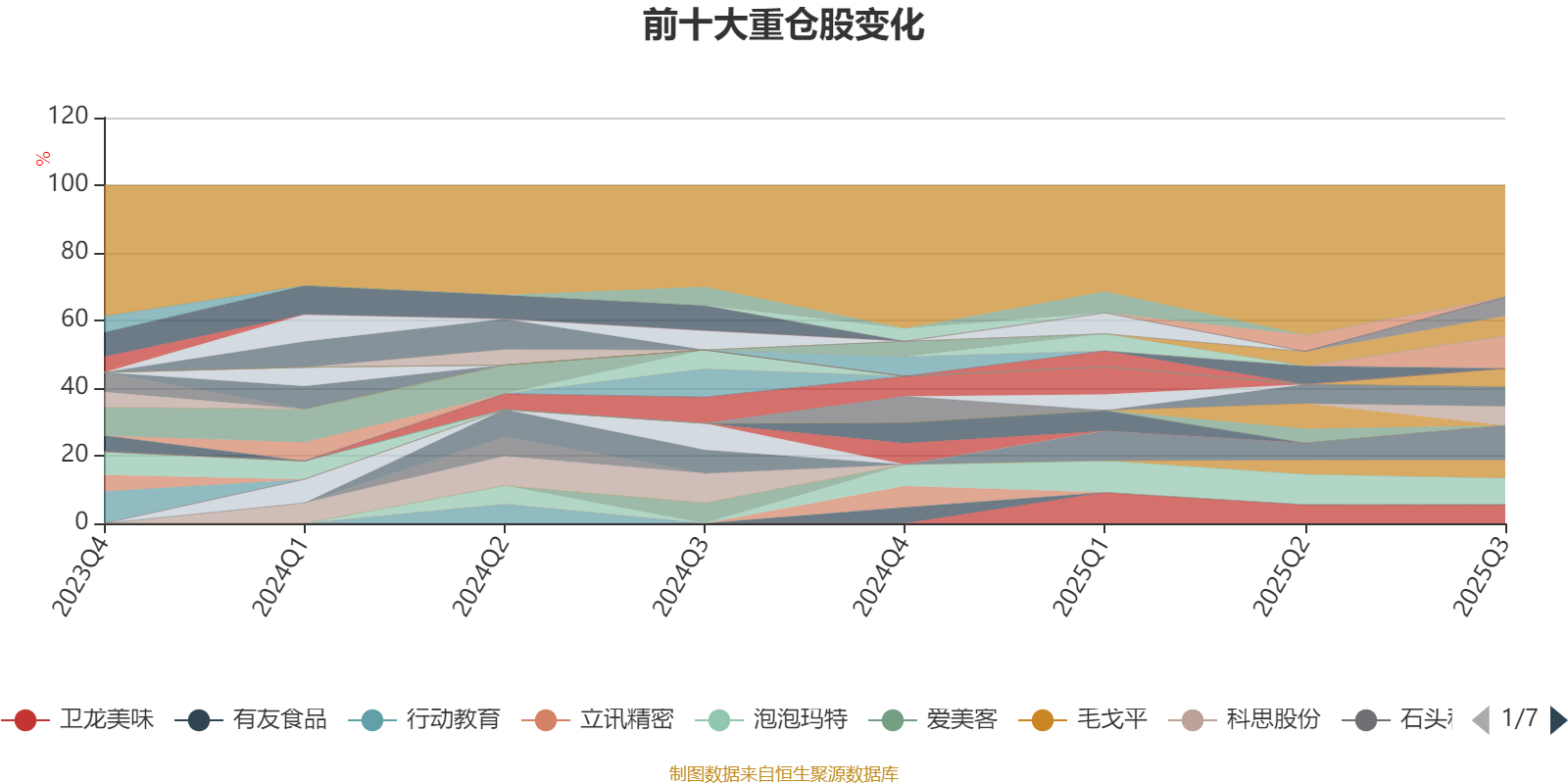 基金管理人在三季报中表示,报告期内,我们依旧围绕前期三大方向布局:1)新消费崛起的细分方向:潮玩、国货化妆品、休闲零食、教育;2)AI相关的基础设施以及互联网、玩具、机器人等不同的终端应用方向;3)创新药。我们依据上述领域中优质公司的估值性价比进行动态调整来获得超额收益。
