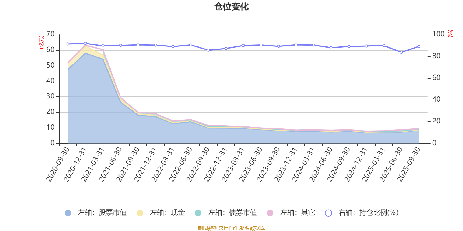 据定期报告数据统计,近三年平均股票仓位为88.94%,同类平均为85.99%。2020年末基金达到91.9%的最高仓位,2025年上半年末最低,为83.79%。
