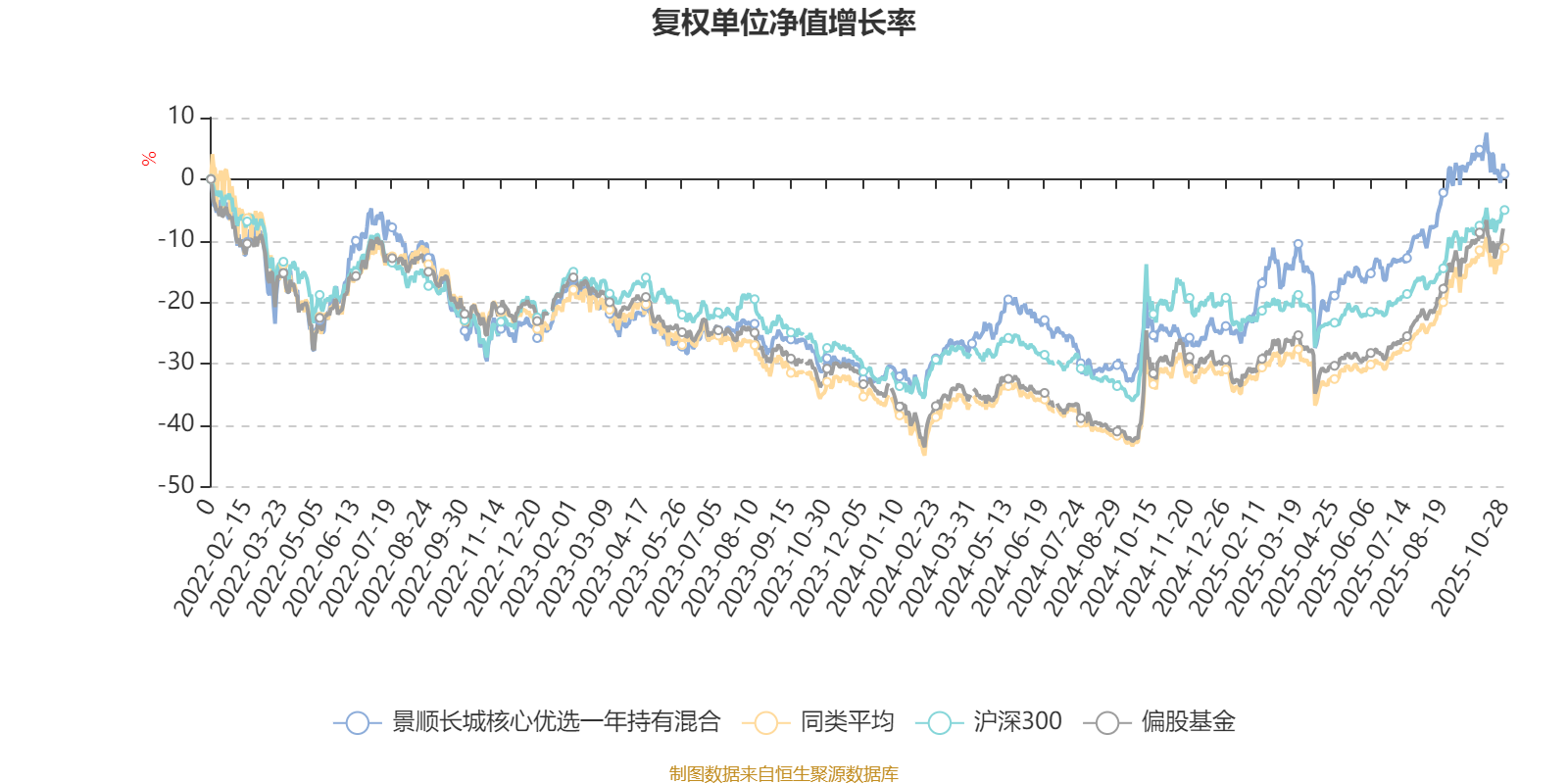 截至10月28日,景顺长城核心优选一年持有混合近三个月复权单位净值增长率为10.73%,位于同类可比基金178/265;近半年复权单位净值增长率为24.15%,位于同类可比基金169/265;近一年复权单位净值增长率为32.82%,位于同类可比基金90/265;近三年复权单位净值增长率为41.94%,位于同类可比基金44/253。