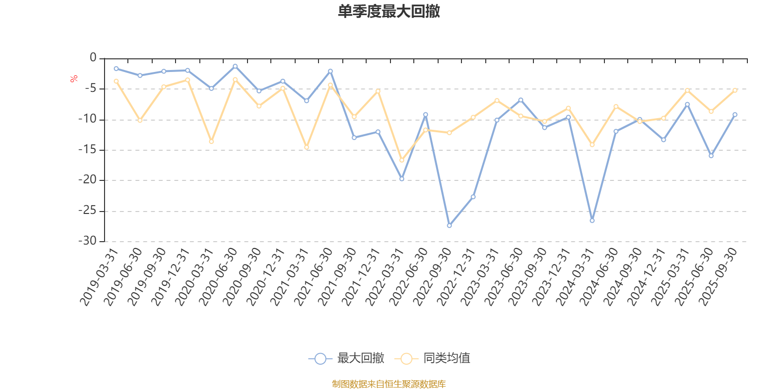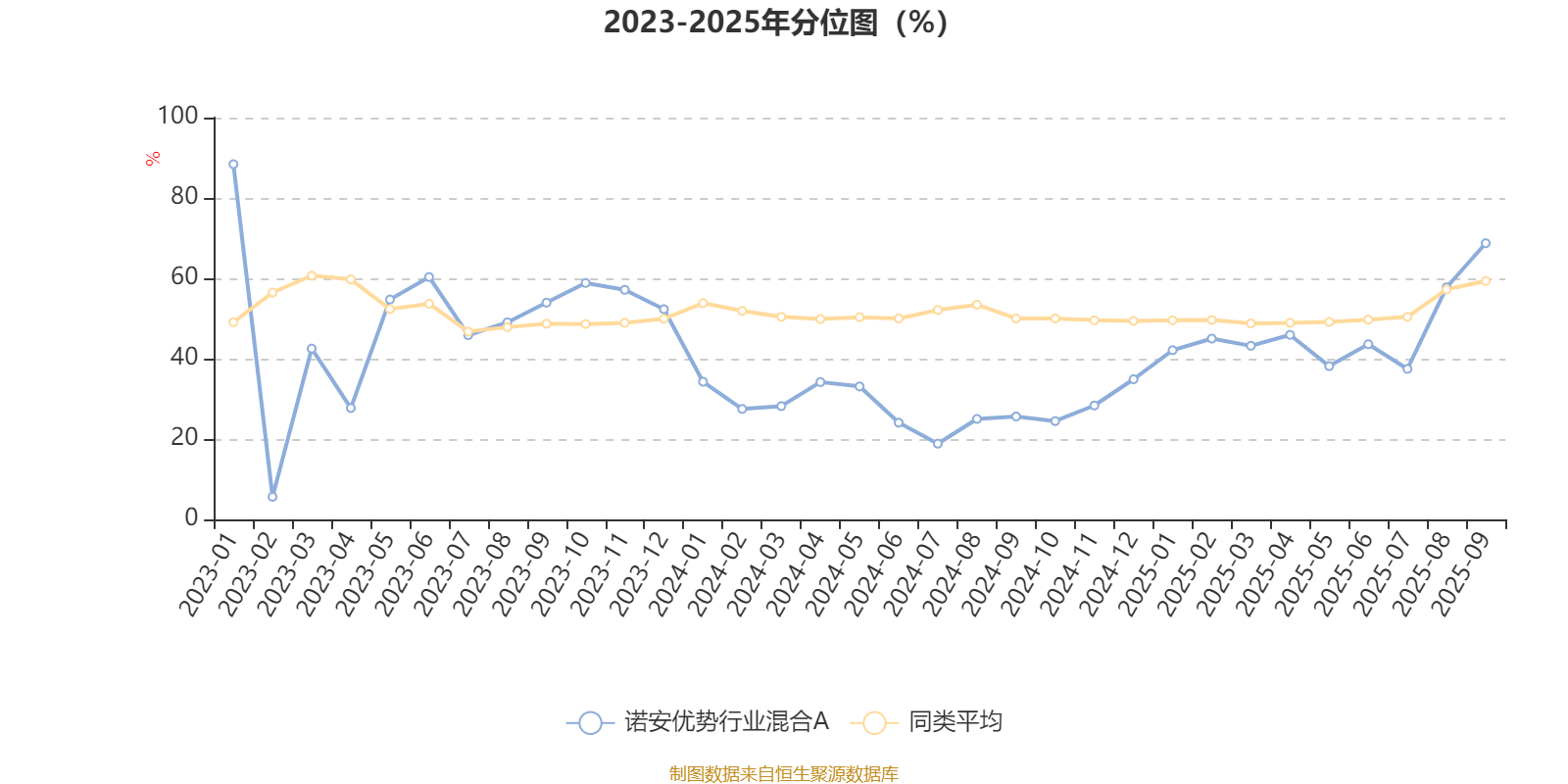 通过所选区间该基金净值增长率分位图,可以观察该基金与同类基金业绩比较情况。图为坐标原点到区间内某时点的净值增长率在同类基金中的分位数。