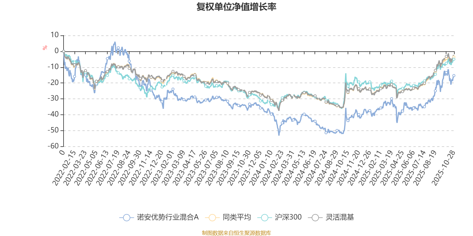 截至10月28日,诺安优势行业混合A近三个月复权单位净值增长率为22.64%,位于同类可比基金313/1287;近半年复权单位净值增长率为37.55%,位于同类可比基金318/1287;近一年复权单位净值增长率为41.42%,位于同类可比基金231/1287;近三年复权单位净值增长率为12.48%,位于同类可比基金739/1286。