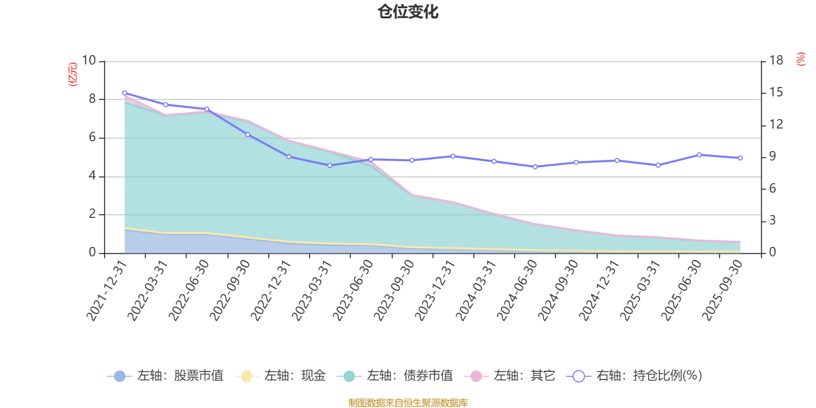据定期报告数据统计,近三年平均股票仓位为8.68%,同类平均为19.13%。2021年末基金达到15.02%的最高仓位,2024年上半年末最低,为8.1%。