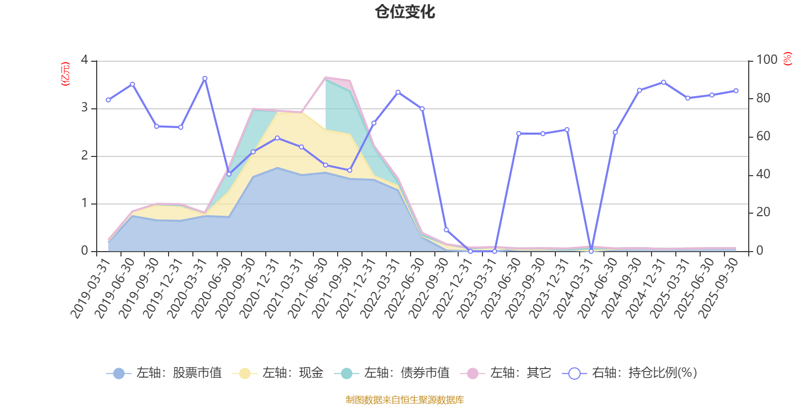 据定期报告数据统计,近三年平均股票仓位为55.82%,同类平均为72.35%。2020年一季度末基金达到90.74%的最高仓位,2024年一季度末最低,为0.02%。