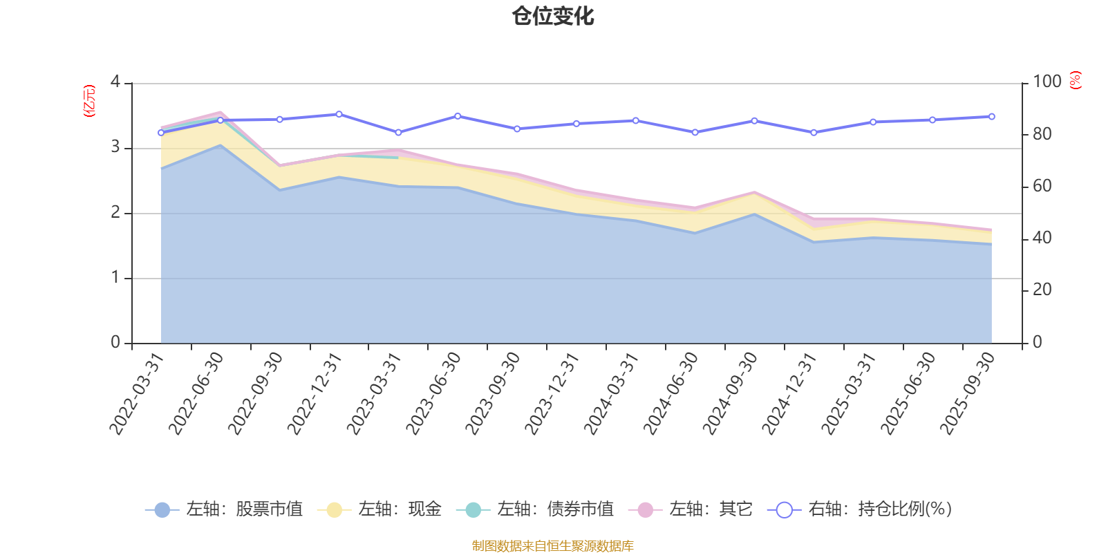 据定期报告数据统计,近三年平均股票仓位为84.48%,同类平均为85.66%。2022年末基金达到88.01%的最高仓位,2022年一季度末最低,为80.89%。