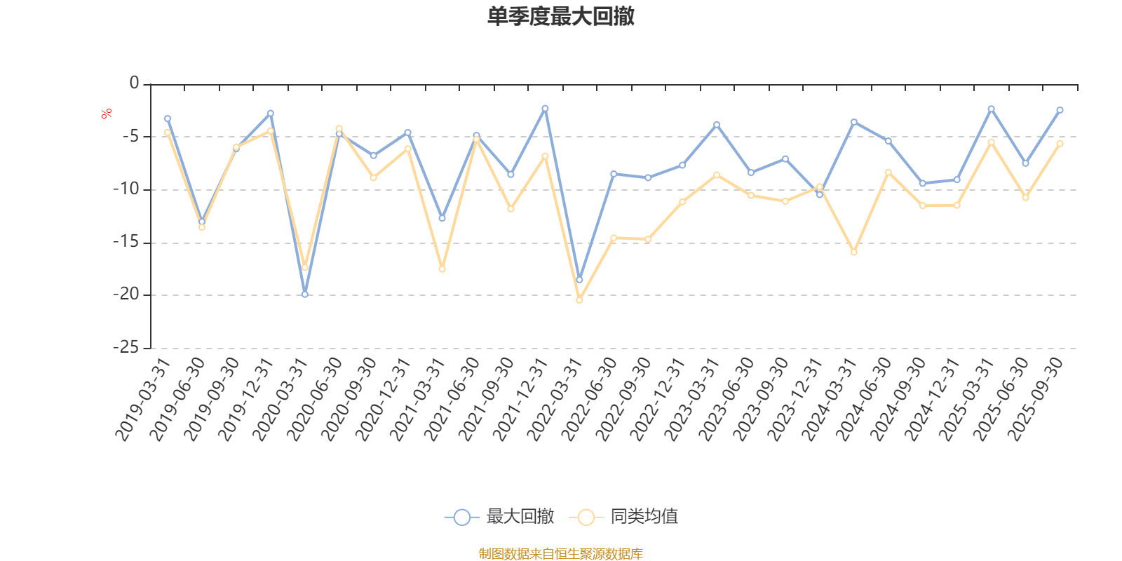 截至10月28日,基金近三年最大回撤为18.17%,同类可比基金排名5/156。单季度最大回撤出现在2020年一季度,为19.9%。