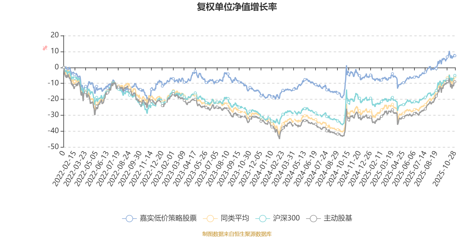 截至10月28日,嘉实低价策略股票近三个月复权单位净值增长率为6.82%,位于同类可比基金141/167;近半年复权单位净值增长率为18.78%,位于同类可比基金133/166;近一年复权单位净值增长率为10.78%,位于同类可比基金142/164;近三年复权单位净值增长率为32.59%,位于同类可比基金62/156。