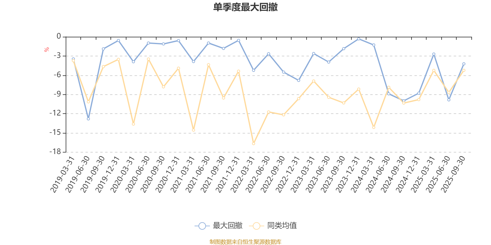 截至10月28日,基金近三年最大回撤为15.83%,同类可比基金排名209/1274。单季度最大回撤出现在2019年二季度,为12.82%。