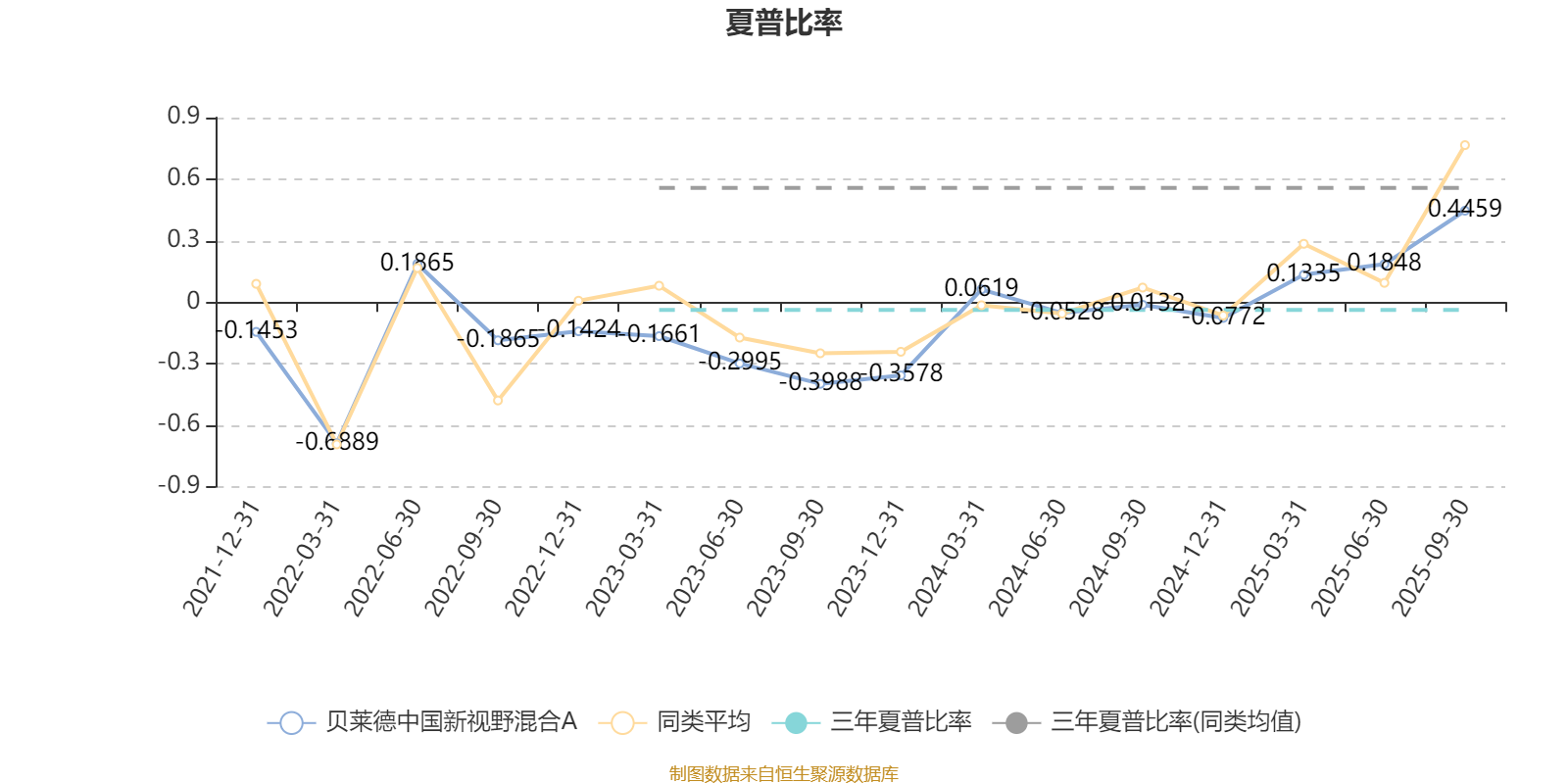 截至9月30日,基金近三年夏普比率为-0.038,位于同类可比基金171/177。