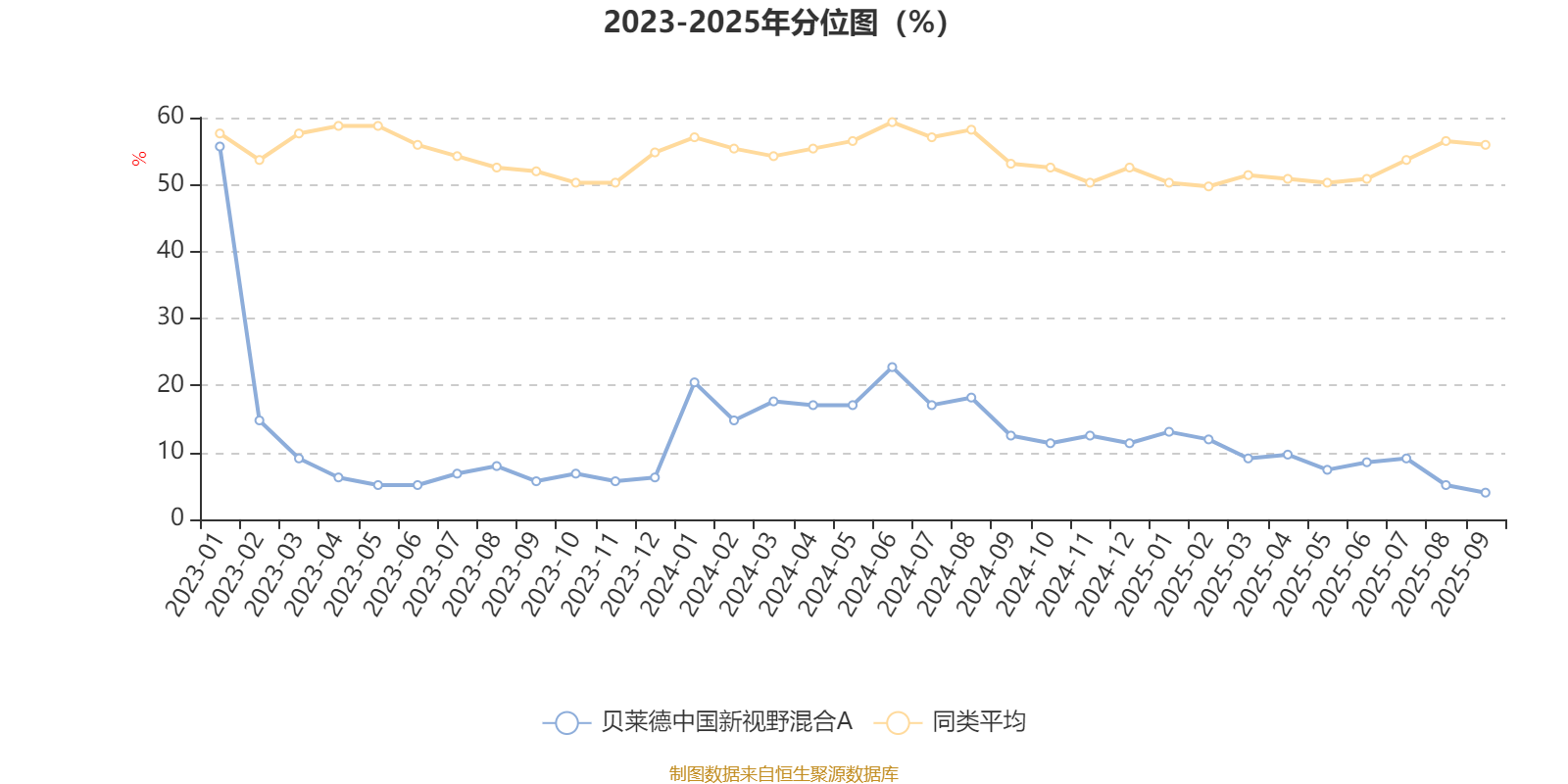 通过所选区间该基金净值增长率分位图,可以观察该基金与同类基金业绩比较情况。图为坐标原点到区间内某时点的净值增长率在同类基金中的分位数。