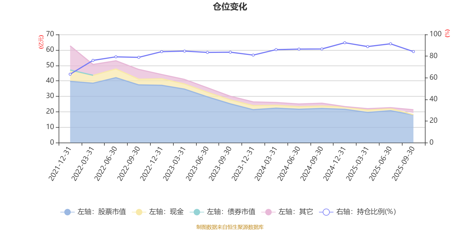 据定期报告数据统计,近三年平均股票仓位为86.08%,同类平均为87.62%。2024年末基金达到92.39%的最高仓位,2021年末最低,为63.31%。