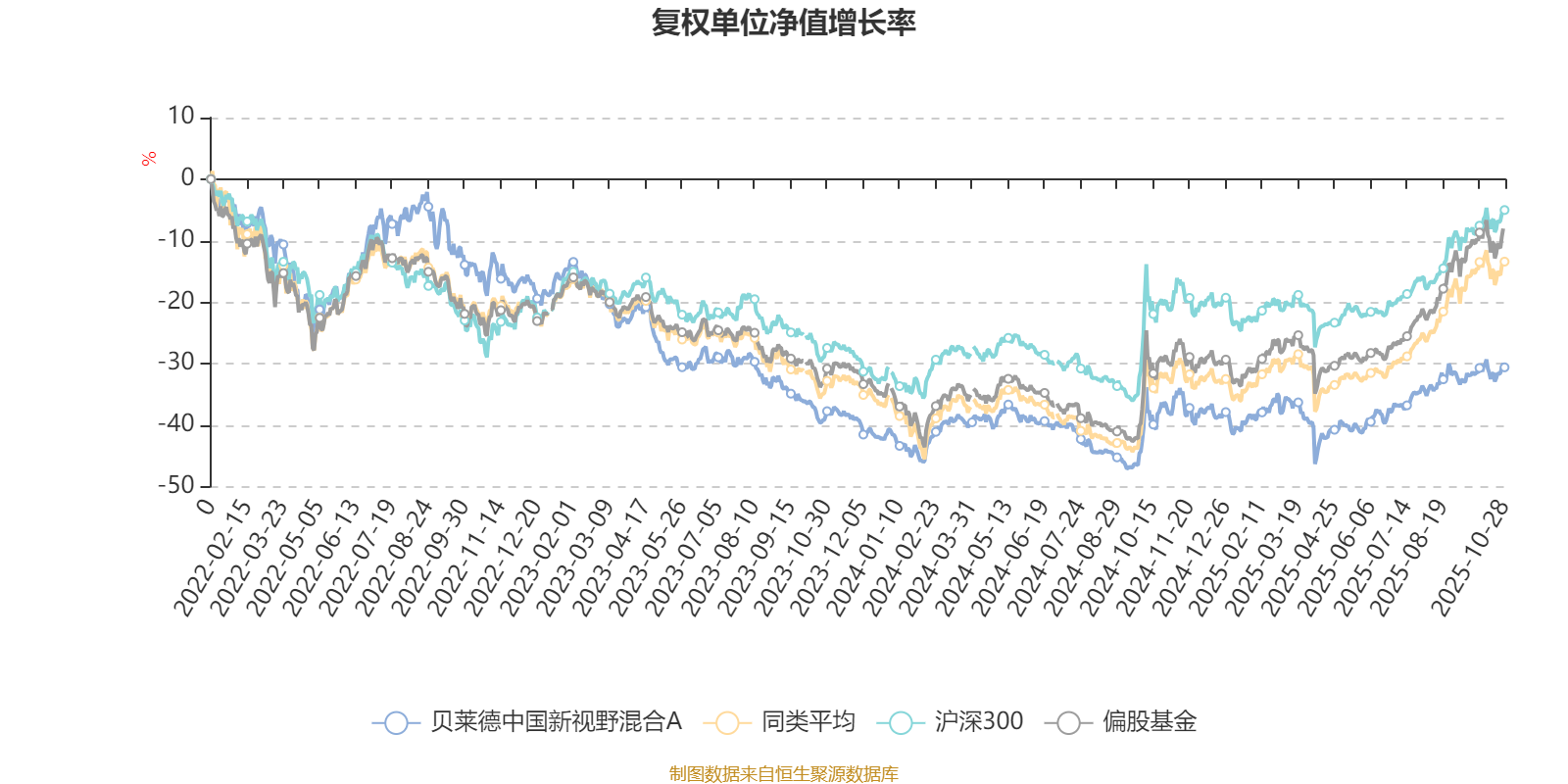 截至10月28日,贝莱德中国新视野混合A近三个月复权单位净值增长率为5.50%,位于同类可比基金154/185;近半年复权单位净值增长率为17.12%,位于同类可比基金150/185;近一年复权单位净值增长率为9.43%,位于同类可比基金165/181;近三年复权单位净值增长率为-15.20%,位于同类可比基金165/175。