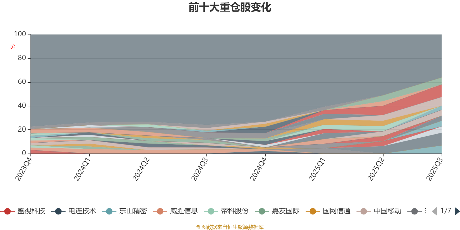 截至2025年三季度末,基金十大重仓股分别是中际旭创、新易盛、胜宏科技、东山精密、仕佳光子、中材科技、宏和科技、德科立、深南电路、源杰科技。