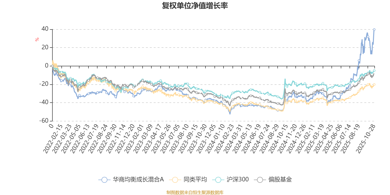 截至10月28日,华商均衡成长混合A近三个月复权单位净值增长率为58.17%,位于同类可比基金5/621;近半年复权单位净值增长率为120.81%,位于同类可比基金4/619;近一年复权单位净值增长率为107.21%,位于同类可比基金5/611;近三年复权单位净值增长率为91.35%,位于同类可比基金17/518。