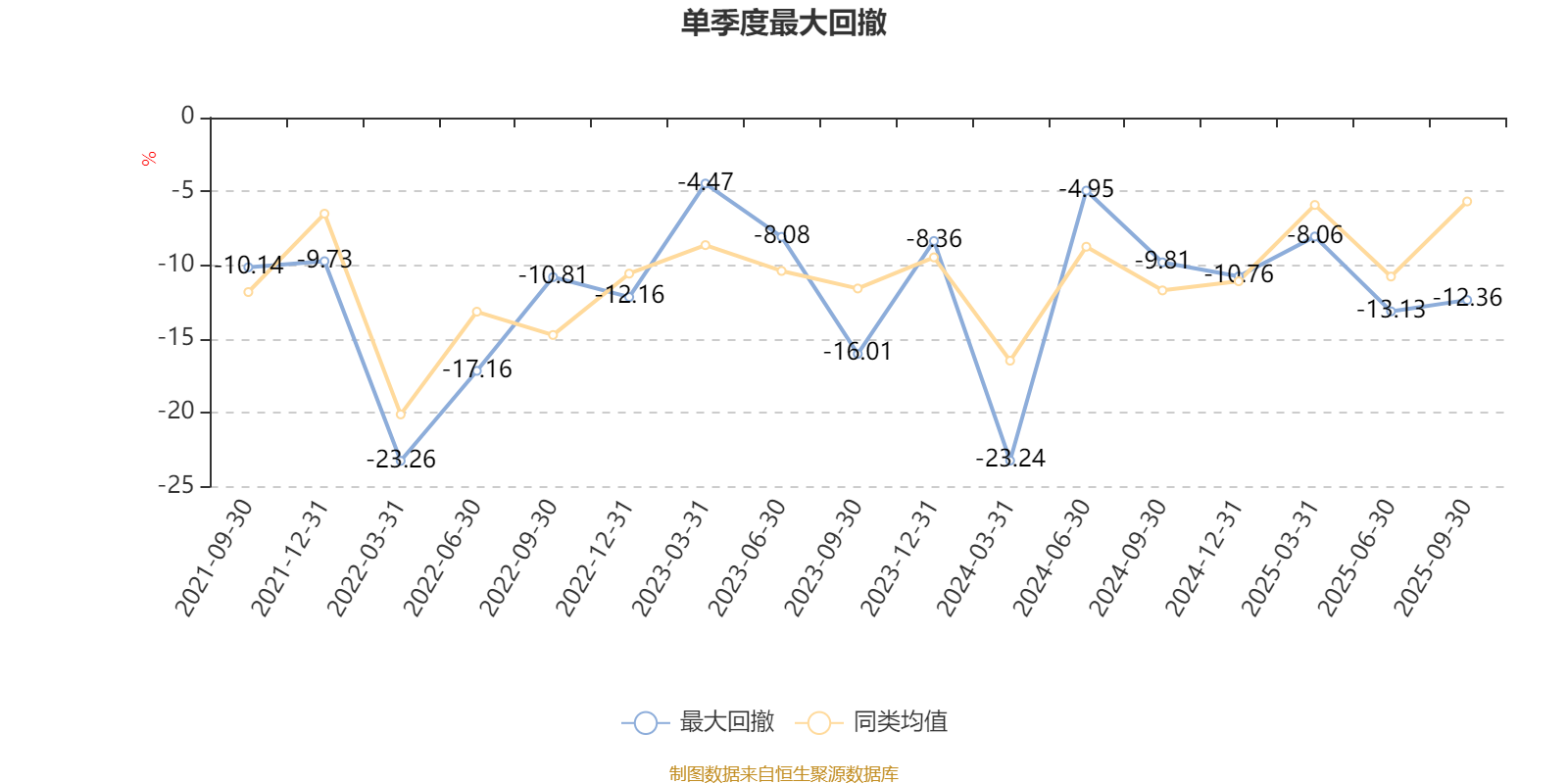 截至10月28日,基金近三年最大回撤为39.88%,同类可比基金排名346/513。单季度最大回撤出现在2022年一季度,为23.26%。