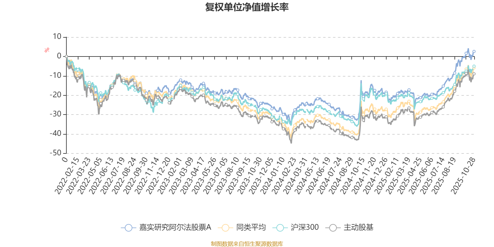 截至10月28日,嘉实研究阿尔法股票A近三个月复权单位净值增长率为16.32%,位于同类可比基金78/167;近半年复权单位净值增长率为30.42%,位于同类可比基金83/166;近一年复权单位净值增长率为25.48%,位于同类可比基金98/164;近三年复权单位净值增长率为32.59%,位于同类可比基金61/156。