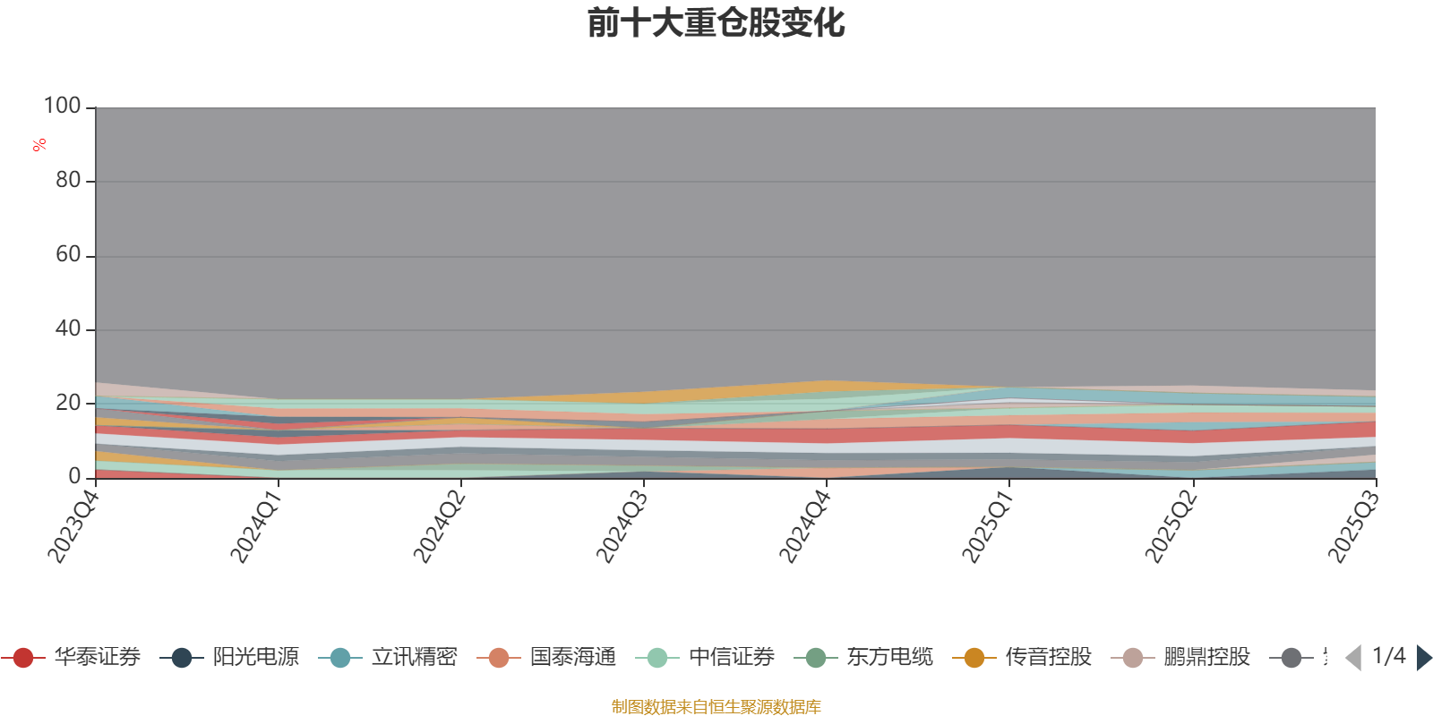 截至2025年三季度末,基金十大重仓股分别是宁德时代、中国平安、贵州茅台、招商银行、阳光电源、紫金矿业、立讯精密、鹏鼎控股、工商银行、江苏银行。