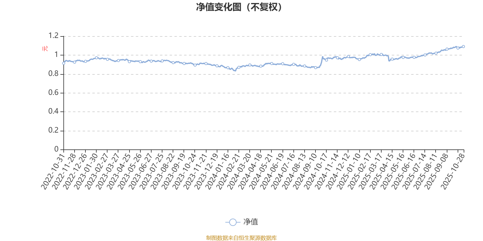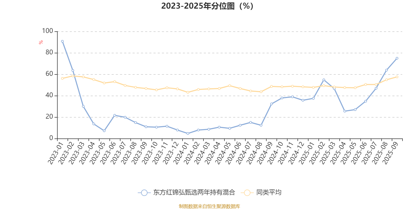 通过所选区间该基金净值增长率分位图,可以观察该基金与同类基金业绩比较情况。图为坐标原点到区间内某时点的净值增长率在同类基金中的分位数。