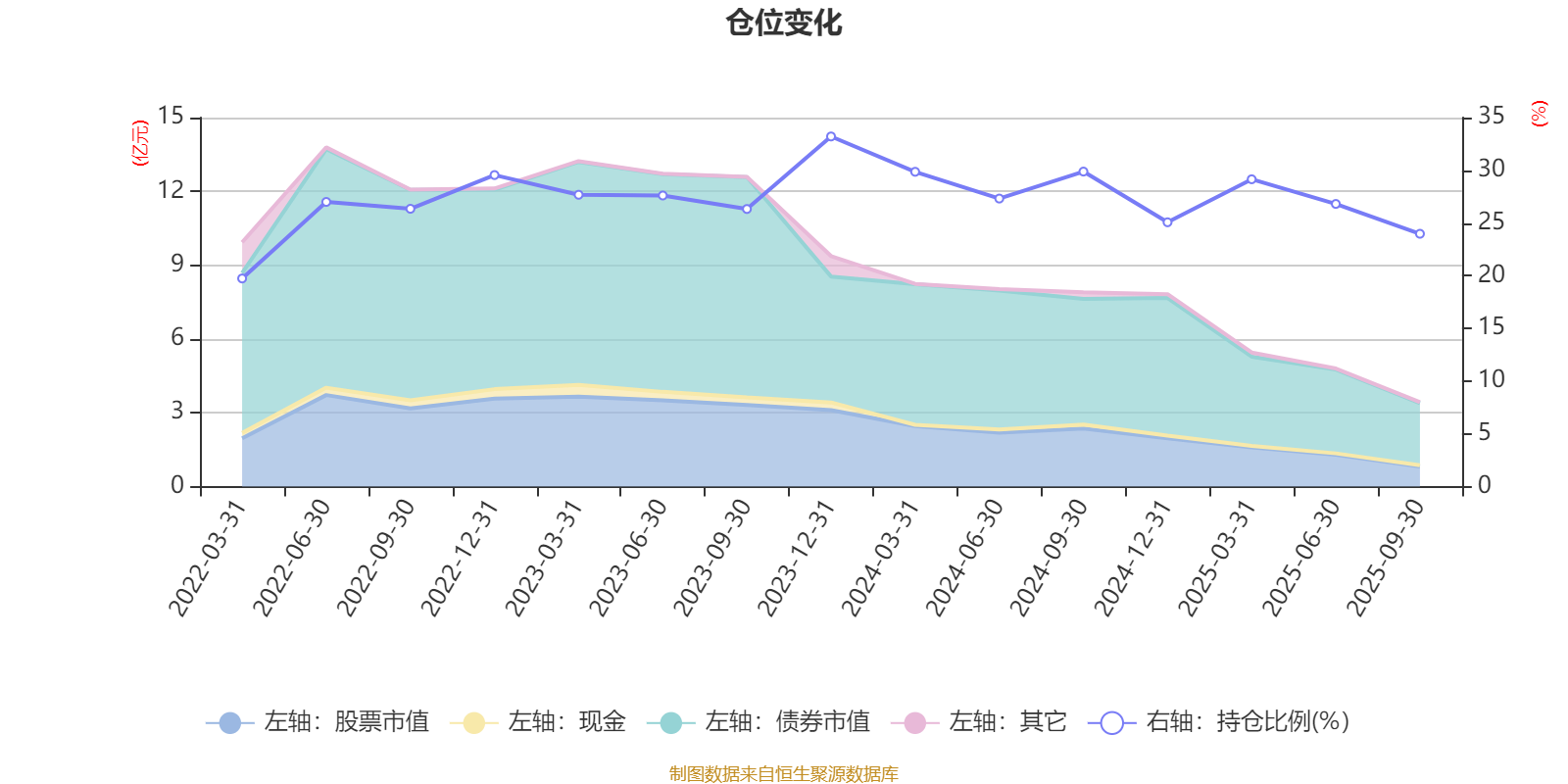据定期报告数据统计,近三年平均股票仓位为28.04%,同类平均为19.14%。2023年末基金达到33.21%的最高仓位,2022年一季度末最低,为19.74%。
