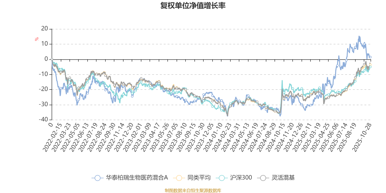 截至10月28日,华泰柏瑞生物医药混合A近三个月复权单位净值增长率为-5.57%,位于同类可比基金1269/1287;近半年复权单位净值增长率为19.44%,位于同类可比基金774/1287;近一年复权单位净值增长率为34.77%,位于同类可比基金329/1287;近三年复权单位净值增长率为28.77%,位于同类可比基金391/1286。