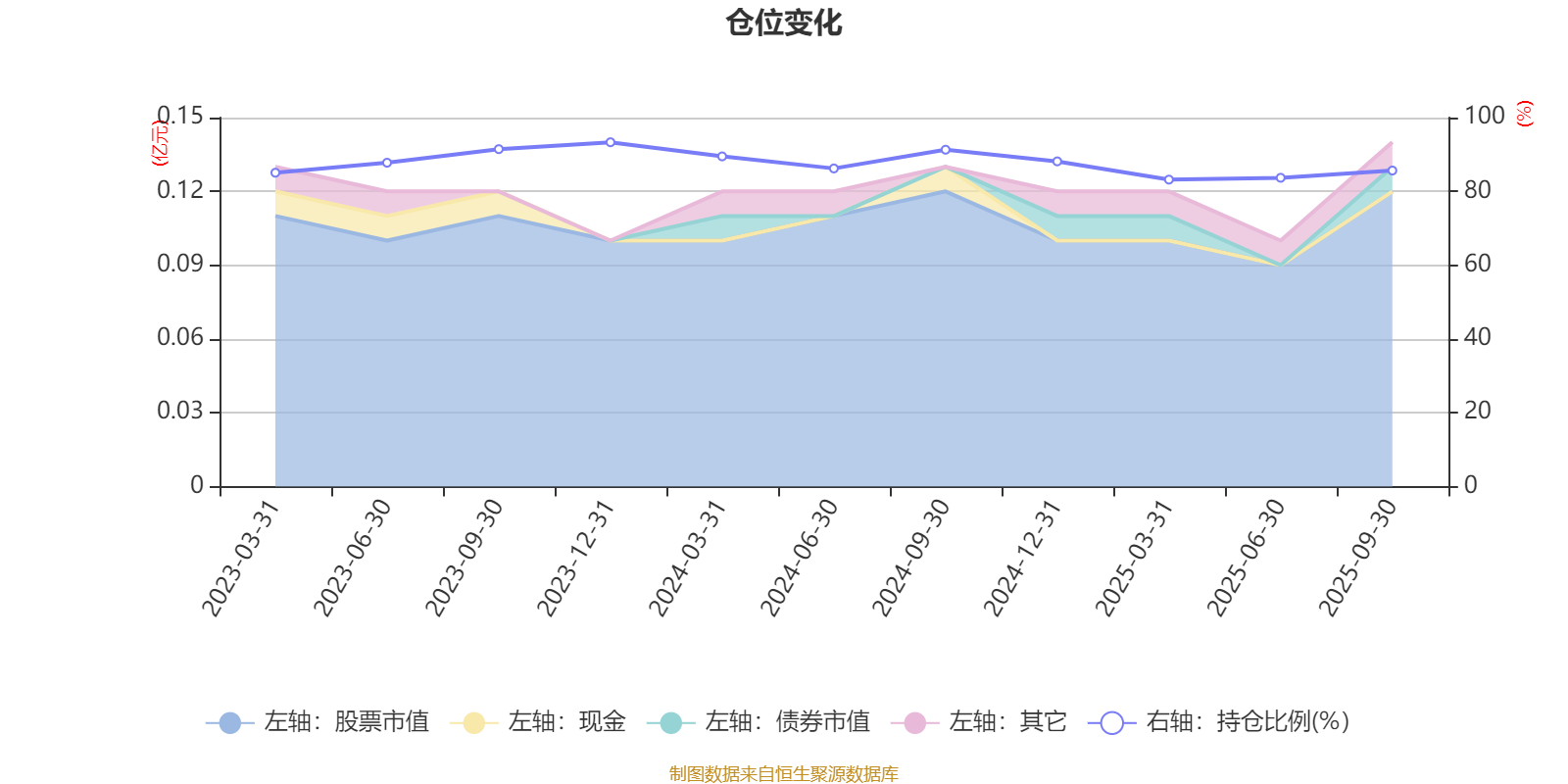 据定期报告数据统计,成立以来平均股票仓位为87.75%,同类平均为86.57%。2023年末基金达到93.32%的最高仓位,2025年一季度末最低,为83.19%。